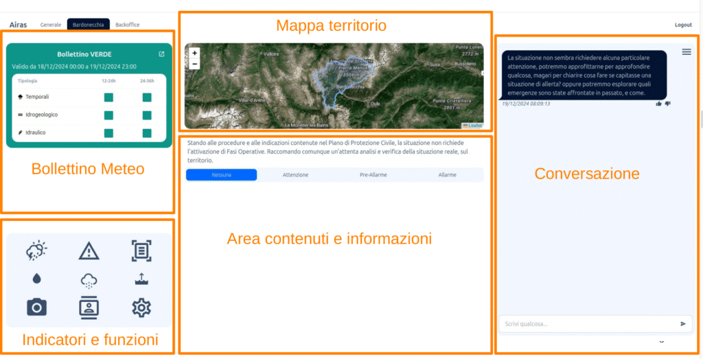 AIRAS mette in relazione i dati pluviometrici con i modelli storici di alluvione, fornendo dati utili per la chiusura preventiva delle strade o l’invio di risorse di Protezione Civile quando vengono raggiunge le soglie di allarme